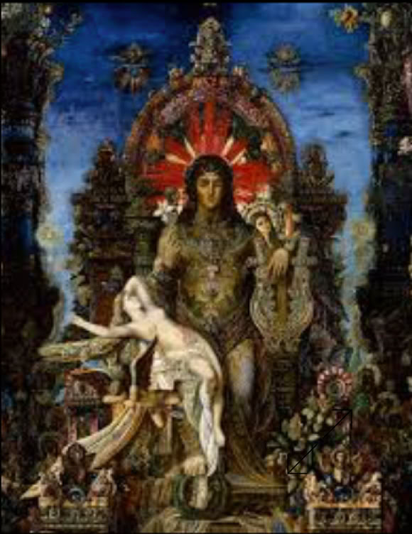 Gustave Moreau, né en 1826 à Paris et mort dans la même ville en 1898, est un peintre, graveur, dessinateur et sculpteur français. Il est l'un des principaux représentants en peinture du courant symboliste, imprégné de mysticisme. La plupart de ses œuvres sont exposées au musée Gustave Moreau à Paris.