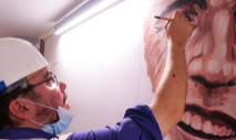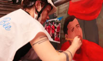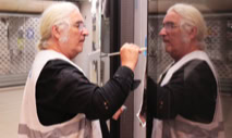 Daniel Gosse au découpage de la frisquette (lettrage)