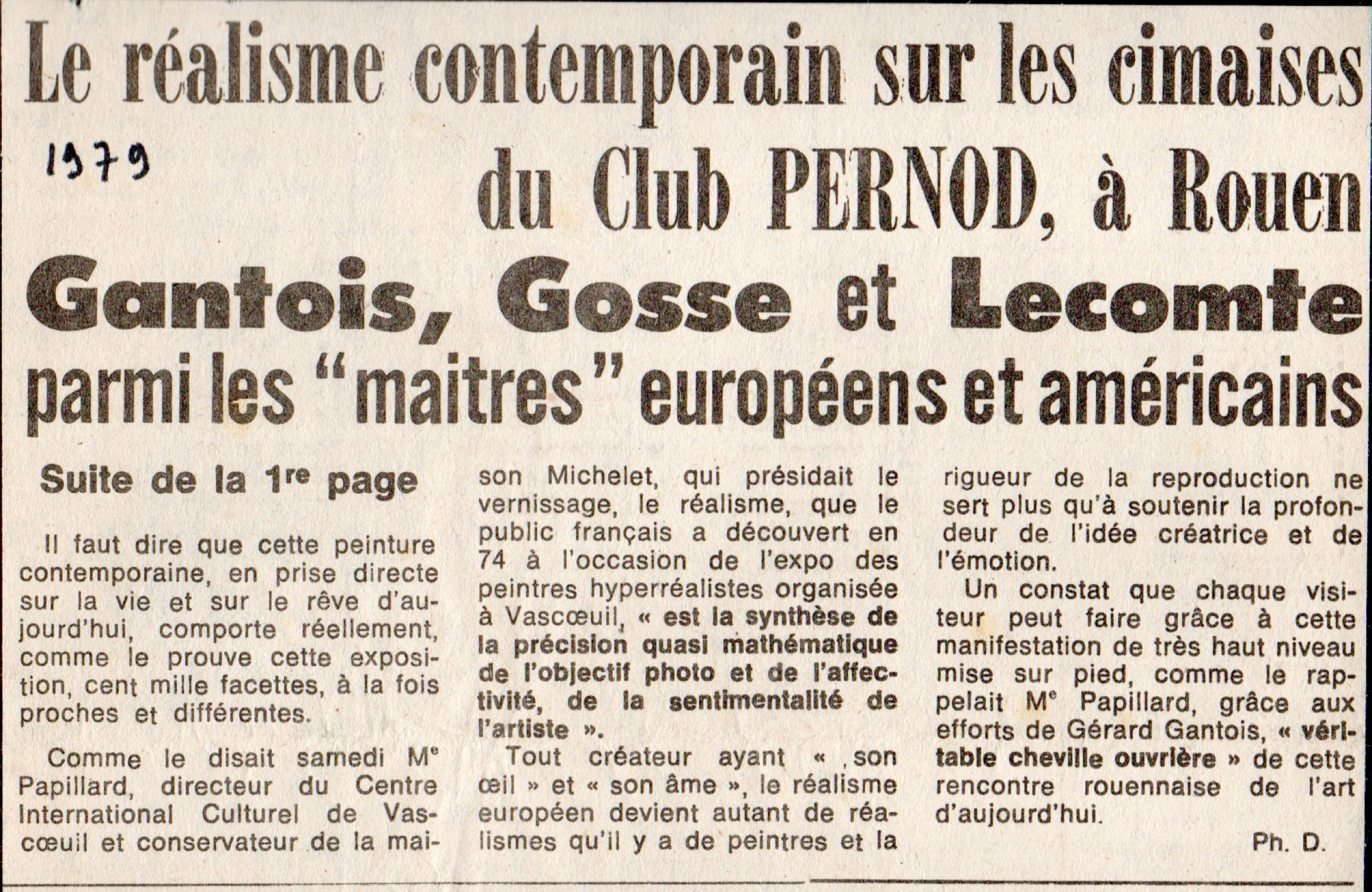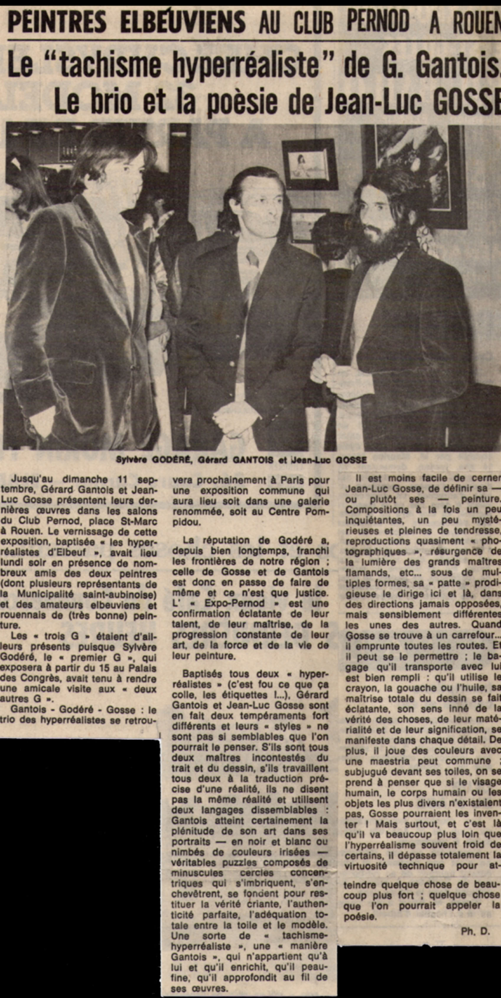 Comme le disait samedi Maître Papillard, directeur du centre international culturel de Vascoeuil et conservateur de la maison Michelet, qui présidait le vernissage, "ce réalisme est la synthèse de la précision quasi mathématique de l'objectif photo et de l'affectivité, de la sentimentalité de l'artiste."