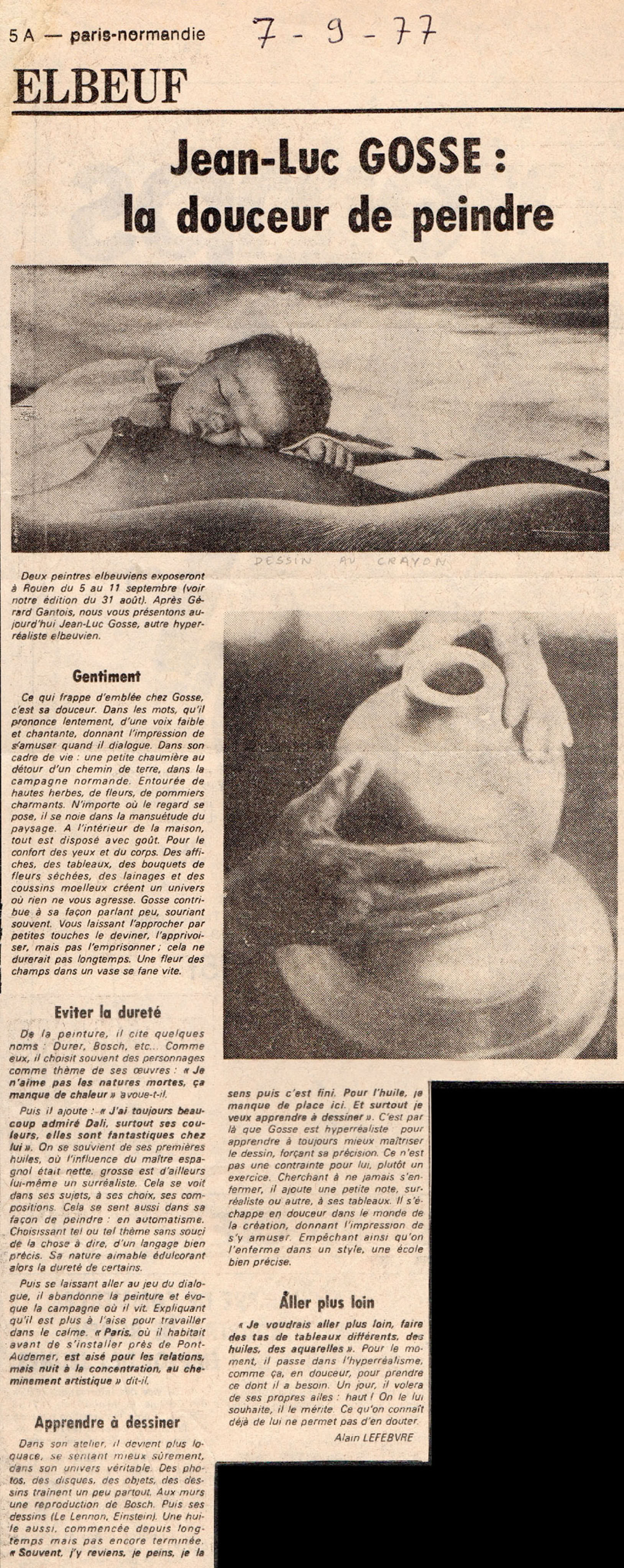 - Gosse qui a émigré à quelques centaines de kilomètres d'Orival, poursuit sa quête de la perfection ; son oeil photographique, sa "patte" magique servent son inspiration à la fois rigoureuse et foisonnante. Un très grand talent... et quel coloriste !