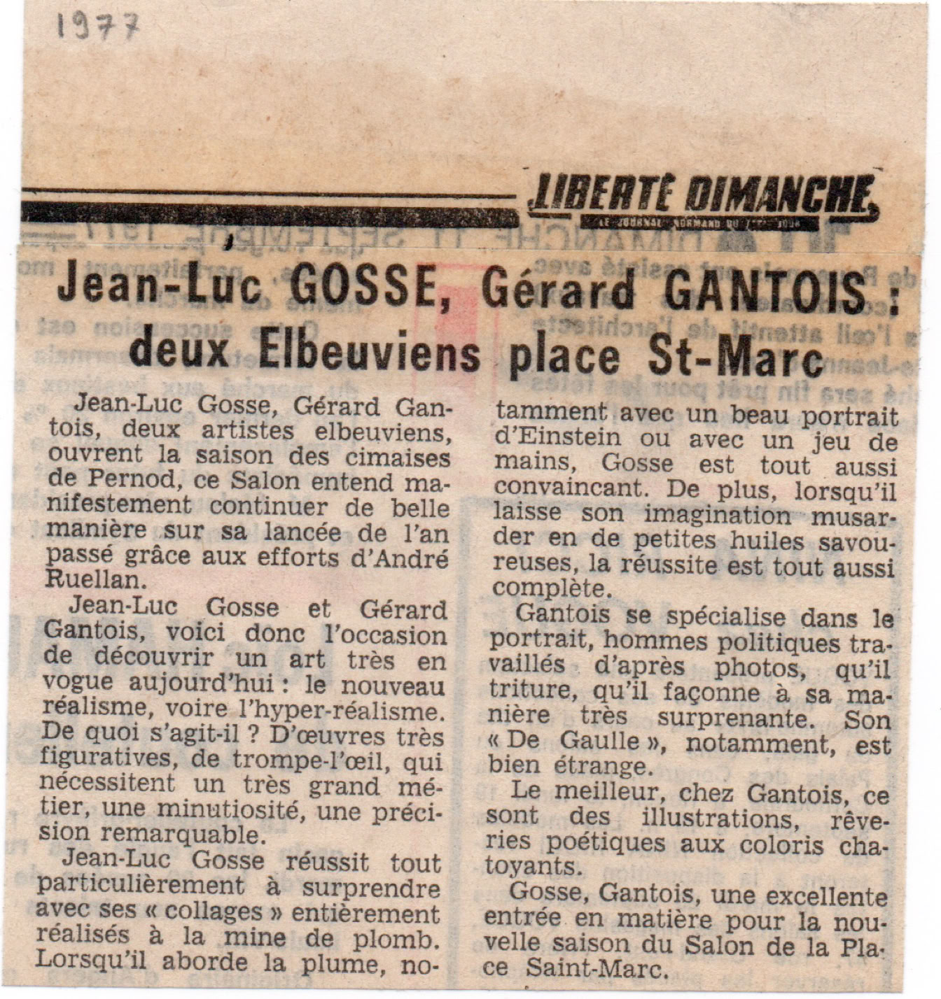 - Gantois avec sa technique prodigieuse montre ses juxtapositions (le concorde survolant le pont d'oissel) qui ont acquis une force émotionnelle très intense...