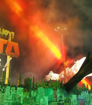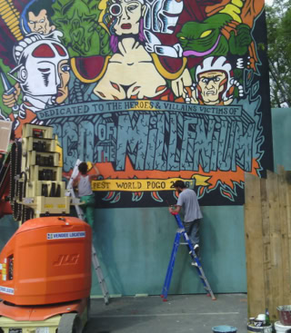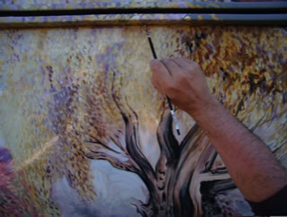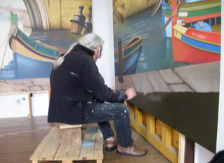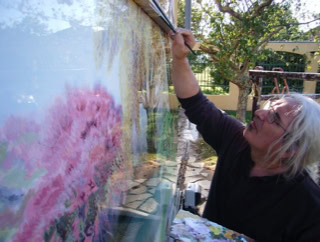 Plus tard, j’ai traité mes peintures murales de grands formats uniquement à l’huile ce qui m’obligeait à ne travailler que sur des projets intérieurs. Puis j’ai étudié la peinture acrylique, je me suis également intéressé aux méthodes utilisées dans l’industrie automobile, ainsi qu’à la technique très raffinée du laque chinois. Je recherchais des supports et des produits adaptés aux conditions difficiles.