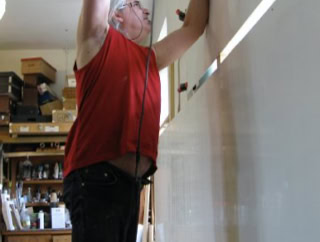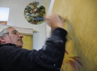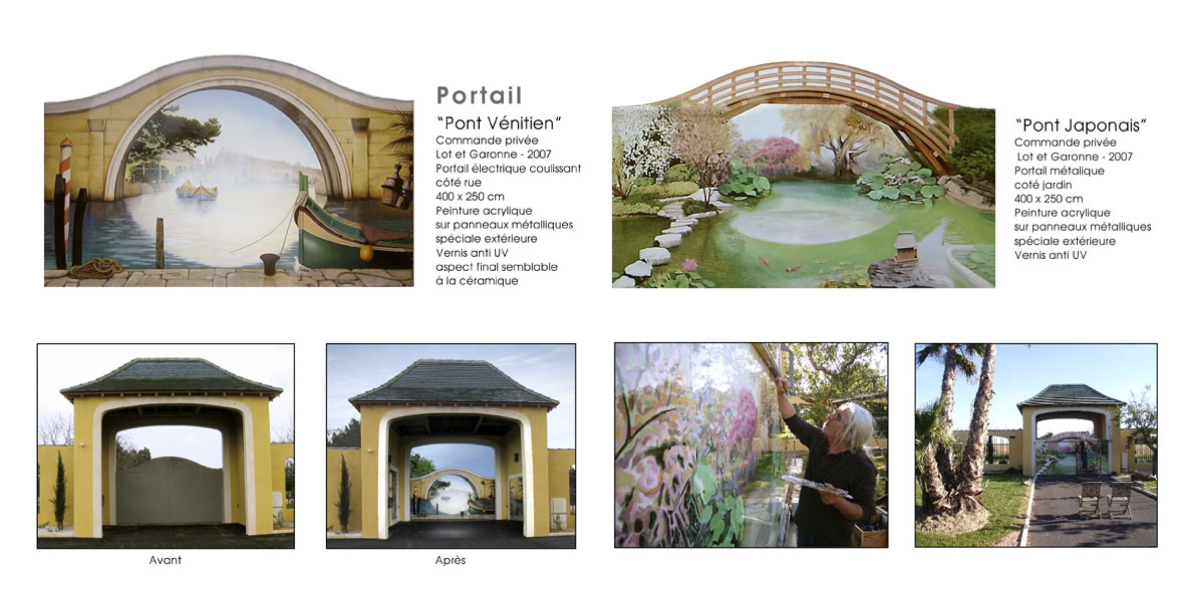 Depuis plusieurs années, mon activité d'artiste peintre plasticien m'a amené à réaliser, outre ma production de tableaux de chevalet, un certain nombre de peintures murales, suite à la demande de tel ou tel client, particulier ou entreprise. Il s'agissait, en l'occurrence, de trompe-l'œil, de fresque décorative ou de peinture monumentale. Cette pratique a, peu à peu, orienté mon travail vers une prise en compte de plus en plus importante de l'espace en tant que tel (patio, mezzanine, loft,