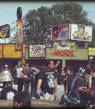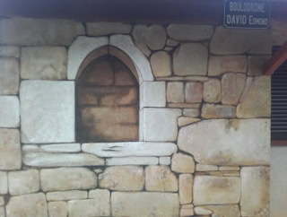 Trompe l’œil réalisé sur le bâtiment du boulodrome de Beauregard