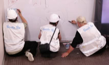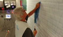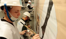 Daniel Gosse au découpage de la frisquette (lettrage)