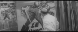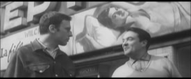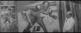 J-L G : Non, pas souvent, mais une nuit j'ai été aider à installer les panneaux sur les façades. Erreur fatale, ce fut une galère pour moi car je n'étais pas très costaud et au bout de deux heures j'étais mort de fatigue. Nous partions à trois dans un camion rempli de toiles de toutes les tailles et nous parcourions Paris toute la nuit, cinéma après cinéma pour installer ces panneaux sur leurs devantures. La technique était la suivante : nous installions d'abord une grande échelle sur la façade puis portions la toile à deux mains par en dessous et montions à l'échelle ainsi, c'est-à-dire sans se tenir aux barreaux, puisque l'on tenait le panneau. Puis il fallait glisser celui-ci dans son emplacement. En haut, il ce bloquait tout seul et en bas, il y avait un petit rebord qui le coinçait. Au début ça allait j'y arrivais avec les panneaux de 2 x 3 m qui n'étaient pas trop lourds, mais l'affaire se compliqua quand les tableaux devinrent plus grands et plus lourds et moi plus fatigué. Alors, il y eu une bourrasque de vent, je faillis partir à la renverse avec le tableau, je me suis rattrapé en me plaquant sur la toile puis je suis redescendu sans rien casser et ce sont les deux autres costauds qui l'ont placé. Un peu plus tard l'échelle m'échappa des mains pour aller cogner sur les grandes portes en verre du cinéma dans un bruit qui me paru catastrophique ! Dans cette nuit silencieuse j'avais l'impression d'avoir tout cassé ! Mes deux collègues me dirent alors d'aller dormir dans le camion. J'étais K.O, il était 3 heures du matin et je me jurais bien de ne pas recommencer cette échappée nocturne.