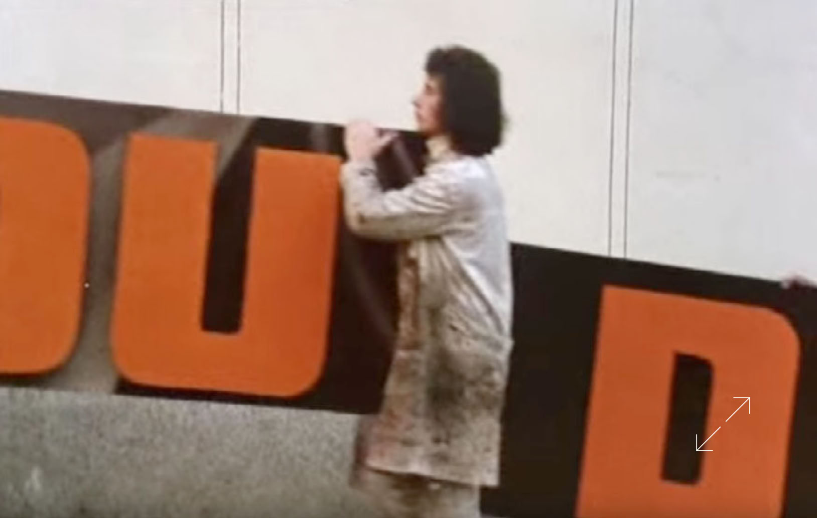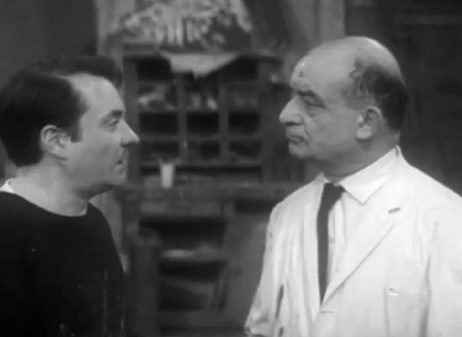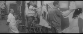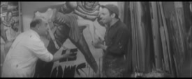 Le patron de Publidécor s’appelait M. Chiff, il était aussi acteur, on le voit ici en blouse blanche, jouant son propre rôle de directeur d‘atelier durant le tournage du film de Jacques Robin, “Les pas perdus“, datant de 1964 et mettant en scène Michèle Morgan, Jean-Louis Trintignant et Jean Carmet, peintres de toiles pour les cinémas dans les ateliers Publidécor.