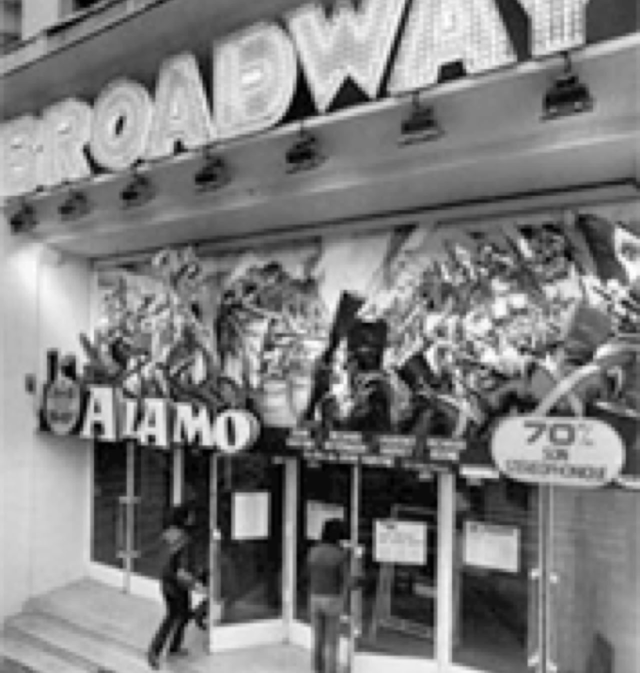 Le Hollywood Boulevard arborait sur la devanture de sa façade de grandes toiles peintes, souvent réalisées par les mythiques ateliers "Publidécor" de Montreuil.