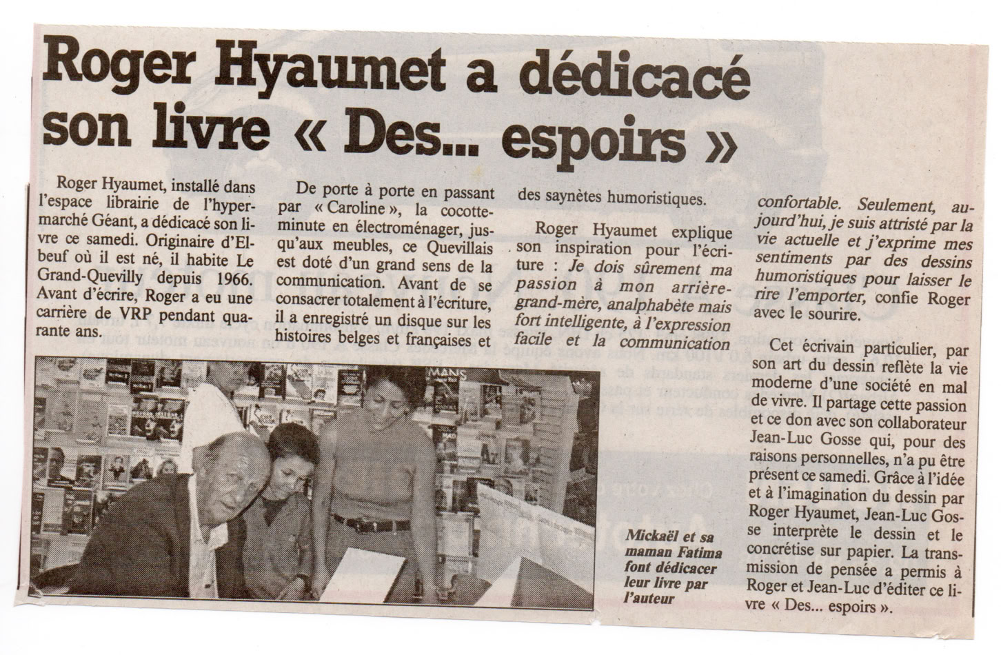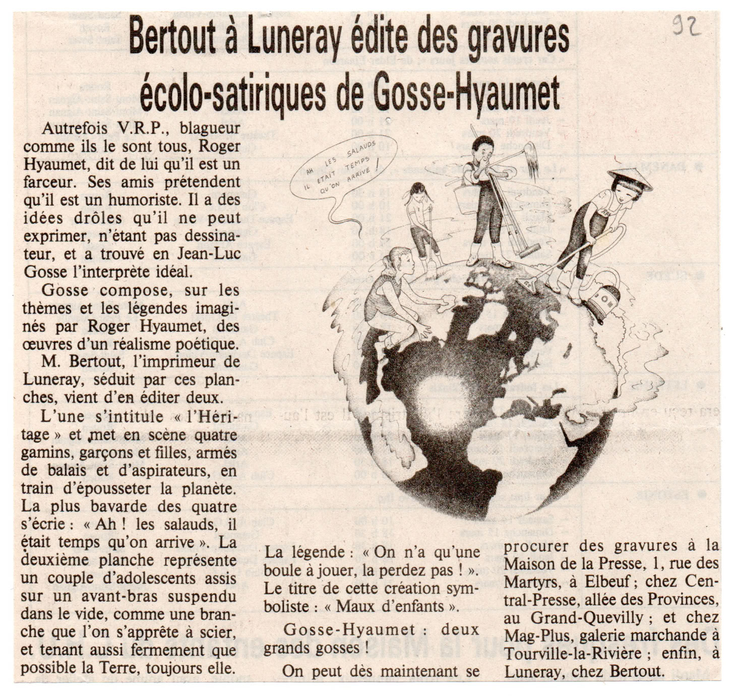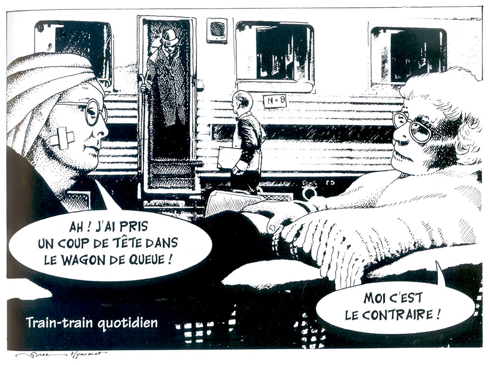 Abel et Caïn, Remus et Romulus ont un temps défrayé la chronique ; Louis XIV et le masque de fer, Sacco et Vanzetti, Mercedes et Benz, Laurel et Hardy ont ensuite tour à tour occupé le devant de la scène laissant aujourd'hui la place à Chirac et Jospin, Roger Pierre et Jean-Marc Thibault, Gervais et Danône mais désormais il faudra compter avec Hyaumet et Gosse, deux garnements du cru, d'âge respectable, qui à l'instar de leurs idoles respectables, Alphonse Allais et Salvador Dali, regardent la vie par le petit bout de la lorgnette et nous livrent de notre société et de ses travers une vision pleine de lucidité mais jamais méchante, jamais orientée, des caricatures d'un humour pur et dur.