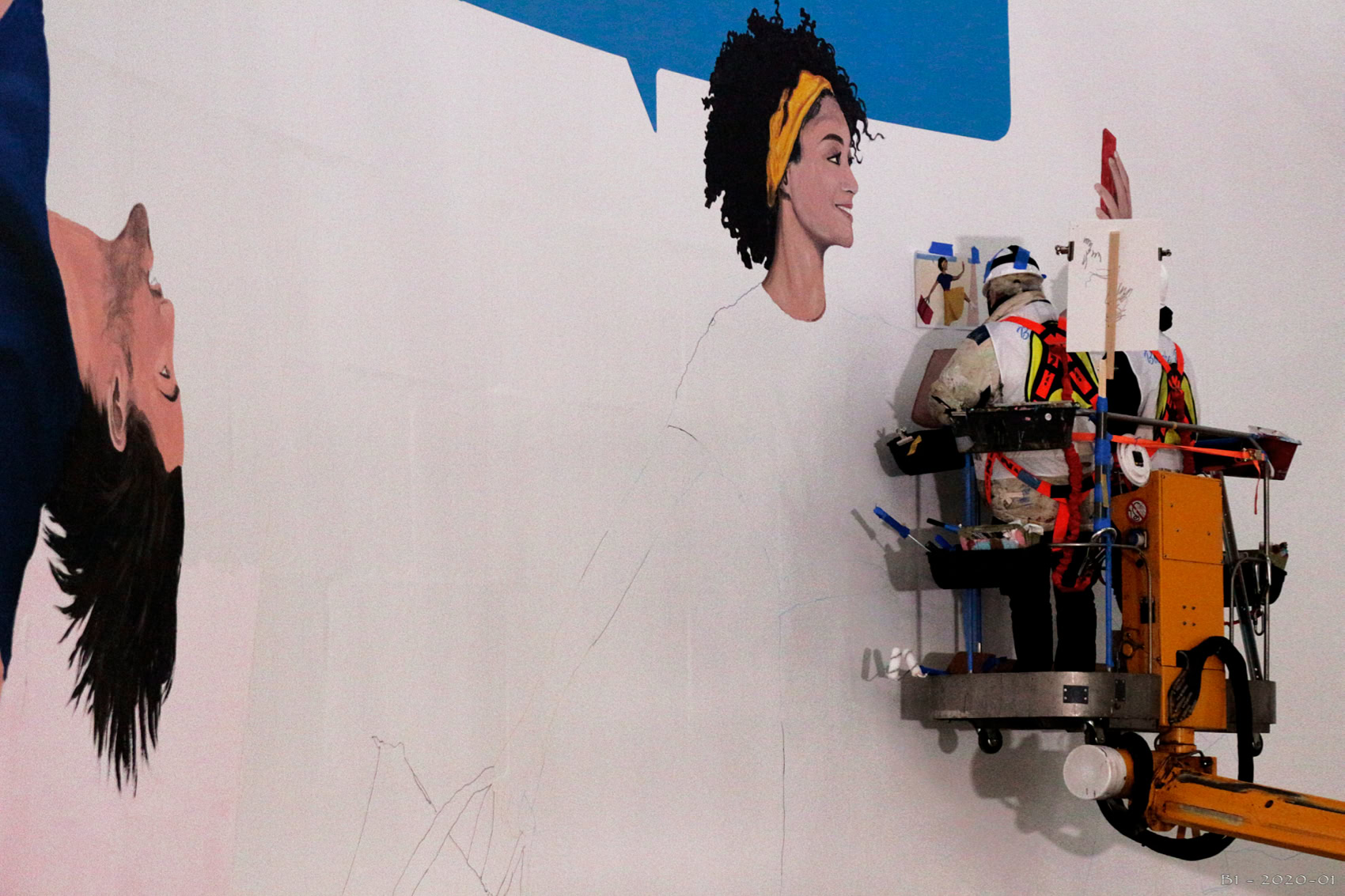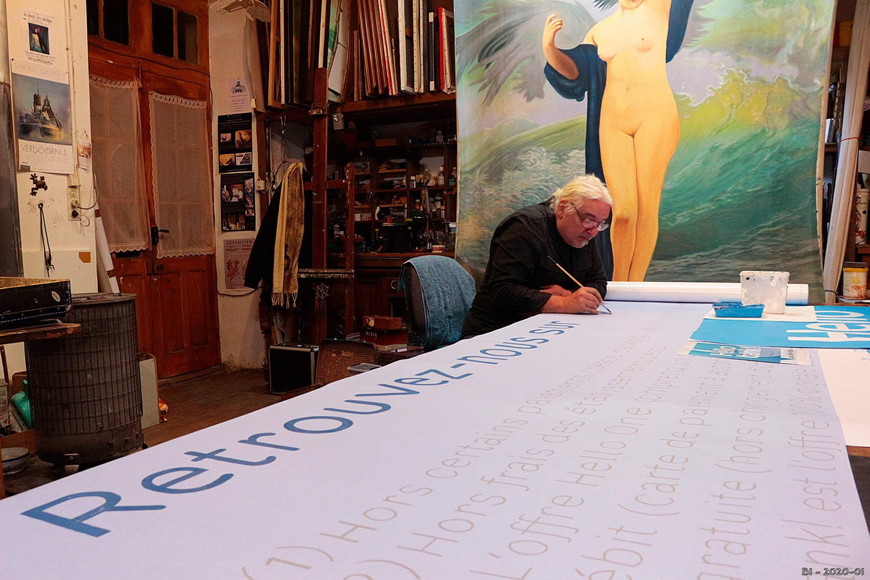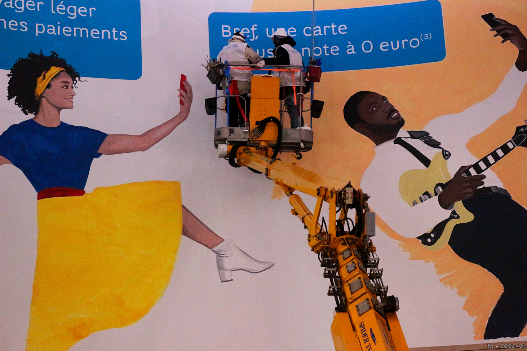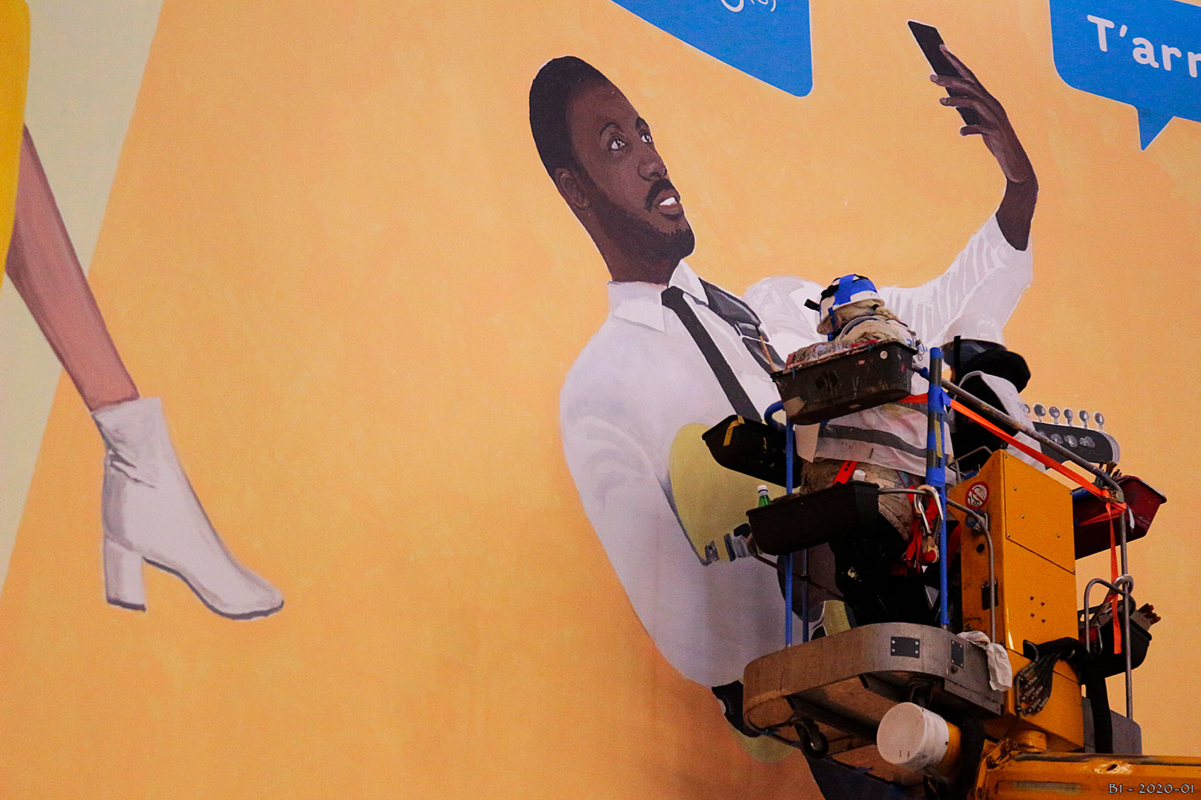 Le lettrage à été peint à l'atelier de Beauregard dans le Lot et les personnagesont été peint sur place à Paris.