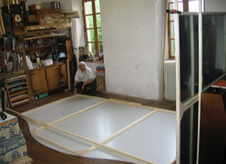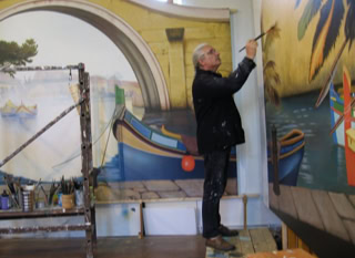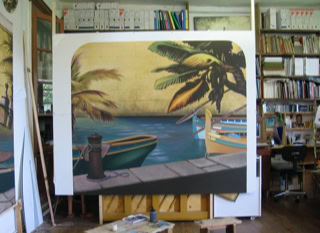 Les grands formats. J’ai démarré ma carrière en 1974, comme décorateur dans les ateliers mythiques de “Publidécor” à Paris, j’y ai réalisé des centaines de toiles pour les cinémas. Ces très grands tableaux peints à la peinture vinylique étaient exposés chaque semaine sur la devanture des façades des cinémas des grands boulevards parisiens. Cette première expérience à été décisive et m’a donné l’envie de peindre grand. Dans les ateliers parisiens mon apprentissage a été accompagné des conseils précieux de deux grands artistes “Prix de Rome”.