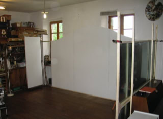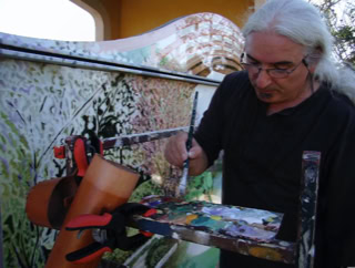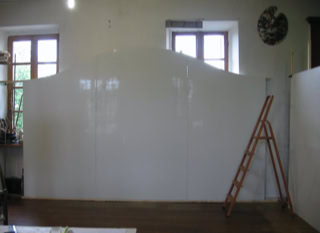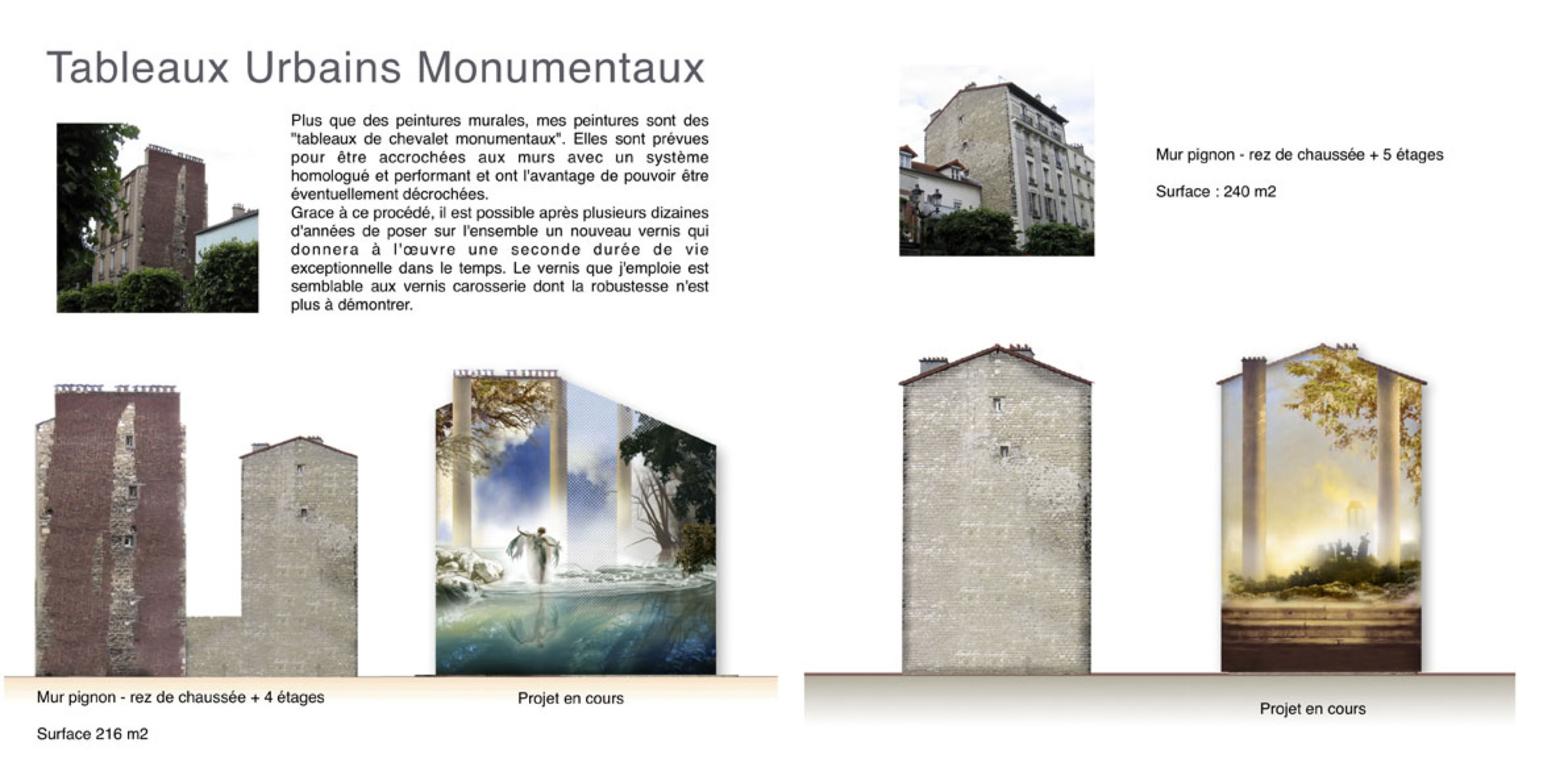 Depuis plusieurs années, mon activité d'artiste peintre plasticien m'a amené à réaliser, outre ma production de tableaux de chevalet, un certain nombre de peintures murales, suite à la demande de tel ou tel client, particulier ou entreprise. Il s'agissait, en l'occurrence, de trompe-l'œil, de fresque décorative ou de peinture monumentale. Cette pratique a, peu à peu, orienté mon travail vers une prise en compte de plus en plus importante de l'espace en tant que tel (patio, mezzanine, loft,