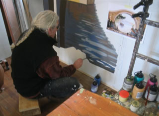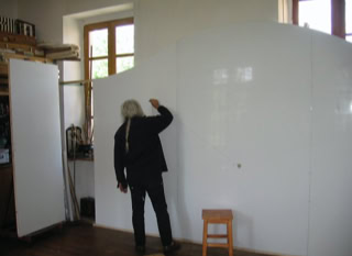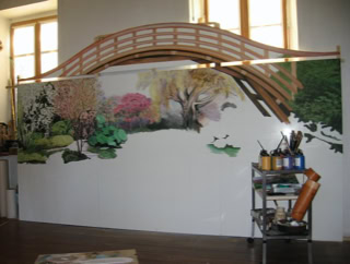 Ma démarche actuelle privilégie une valorisation de l'espace par la mise en place de supports peints modulables : panneau fixe ou mobile, cloison coulissante, paravent... dans des lieux donnés et sur des supports spécifiques.