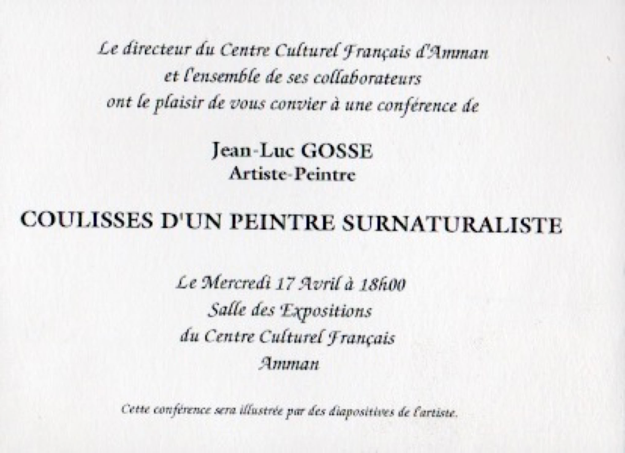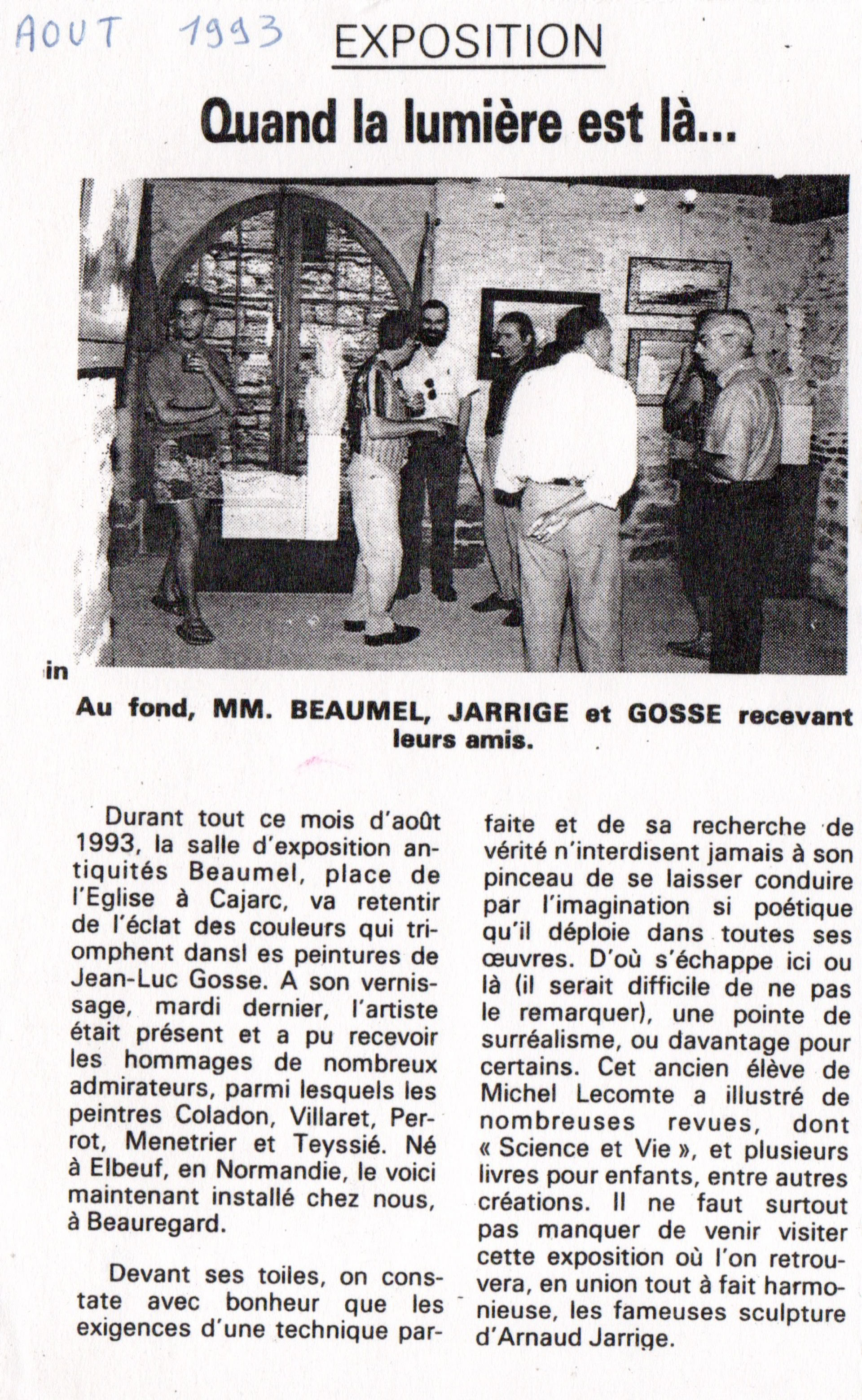 Jean-Luc Gosse a été adhérent à cette association à partir de 1992. Il a été élu, à l'hunanimité, vice-président pour la section peinture de 1997 à 1999.