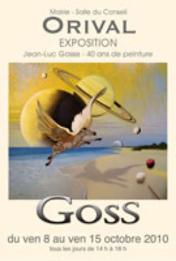 Auteur de très nombreuses peintures murales, GOSS a gardé le regard clair des êtres épris d’infini. Installé dans une ancienne école, à Beauregard dans le Quercy, il fait jaillir le rêve de ses pinceaux. Ne semblant pas atteint par les blessures du temps, qui pour lui n’est qu’une forme d’illusion, ce peintre prodigieux a conservé une âme d’enfant jusqu’aux abords de la cinquantaine. Sans doute est-ce là le secret de son art et de sa vigueur. De l’huile sur toile, il peut avec aisance passer à la peinture murale. C’est ainsi qu’il réalisa d’immenses fresques pour des châteaux ou demeures de prestige.