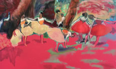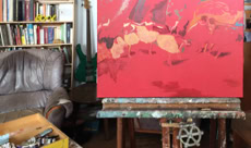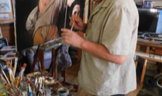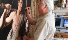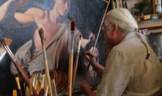 Ancien copiste du musée du Louvre et du musée Gustave Moreau à Paris, j’ai été attiré et j’ai étudié tout particulièrement la période du 19ème siècle où c’est effectué cette fracture incroyable entre le classicisme et la peinture moderne. Au Louvre, cette étude des techniques anciennes et des techniques modernes a été pour moi passionnante à tout point de vue. Autant sur la découverte des matières picturales, des vernis et des préparations des fonds que sur les sujets eux-mêmes. J’ai aussi complété mes recherches au Musée Gustave Moreau. Ce grand maître était le chef de file des peintres symbolistes, élève des proches d’Ingres puis professeur de Matisse. Il a été une charnière étonnante de l’histoire de l’art. Dans son atelier-Musée, ses immenses peintures inachevées laissaient voir et comprendre les fonds, les préparations, la façon moderne de l’artiste, la liberté de travail sur grands formats avec une approche quelquesfois abstraite, tout en réalisant des sujets figuratifs et mythologiques. La restauration de cet hôtel particulier du 19ème siècle fût un formidable laboratoire de travail et de recherche sur ces techniques anciennes que je pratique dans mon atelier depuis plus de quarante ans en les adaptant à mon savoir-faire et à mon regard contemporain.
